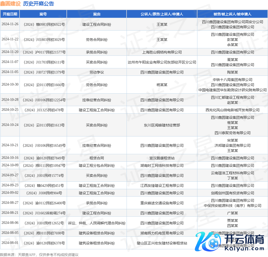 本站音书,凭据天眼查APP裸露体育游戏app平台,近日公布了一则四川鑫圆成就集团有限公司手脚被告/被上诉东说念主的开庭公告,详备本色如下:
