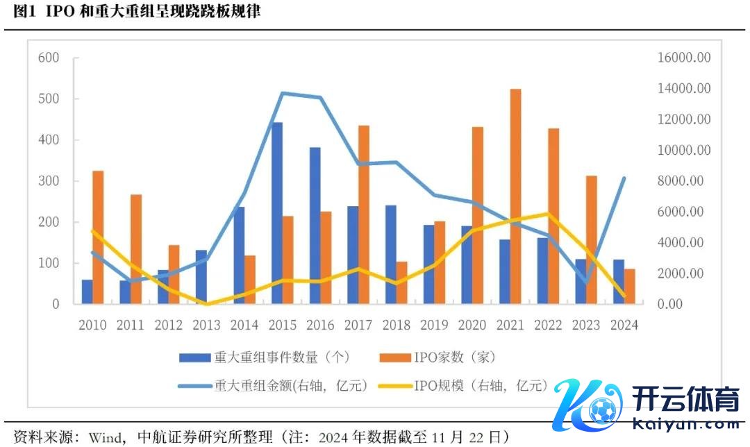 一级阛阓“退出堰塞湖”风物重现,股权投资需要替代的退前途径。历史上IPO和并购重组存在一定跷跷板效应,连年来IPO放缓布景下近期并购重组事件出现提速,新一轮并购潮或行将莅临。现时刊行上市准入关受到严把的同期IPO降速。微不雅层面,IPO受阻股权投资需要替代的退前途径;宏不雅层面,老本阛阓需要替代的方式增强阛阓活力。IPO限制和要害重组事件呈现跷跷板轮番。不雅察2010年以来积年IPO限制和要害重组事件,限制完全值和增速均合适这一轮番。当IPO数目和金额较高时,要害重组事件数目和金额处于低点,IPO增速朝上时要害重组增速向下。连年来IPO派别和限制贯穿回落,政策导向下,2024年以来的并购重组金额大幅增长,已创2019年以来年度新高。