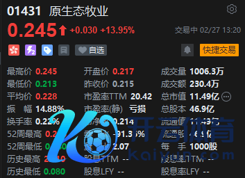 2月27日音信,港股乳成品逆市拉升,大破钞板块不绝强势。原生态牧业涨近14%,当代牧业涨逾9%,优然牧业涨超7%,澳亚集团涨超5%。