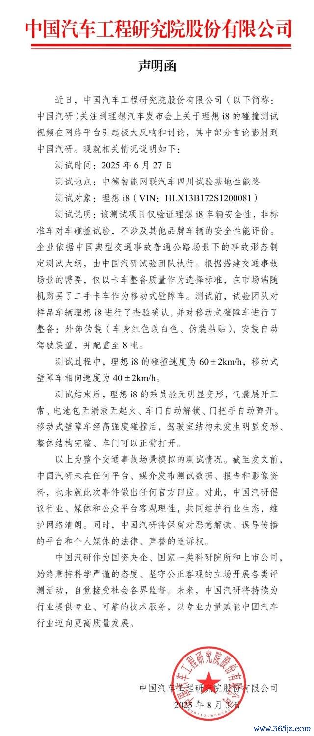 当晚,理思 i8 对撞查验的测试方中国汽研也发布声明函称,该测试神态仅考证理思 i8 车辆安全性,非模范车对车碰撞查验,不涉过火他品牌车辆的安全性能评价。